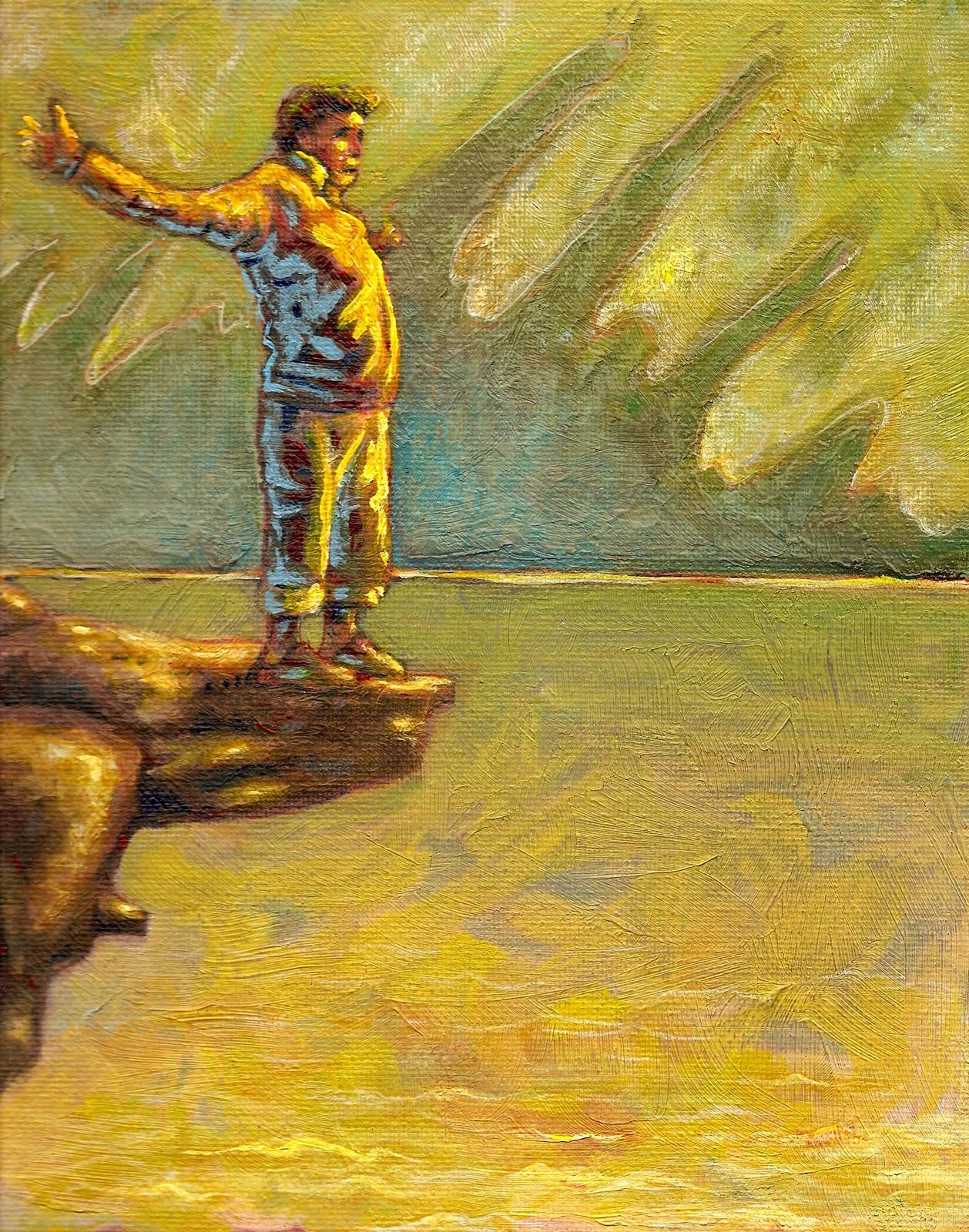 I have been spending spare class moments slopping paints down on little canvas boards, and this summer I will be attempting to paint five (that's FIVE) 8"x10" little masterpieces a week, which I will be selling on ebay.